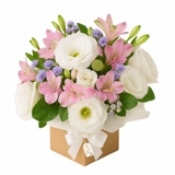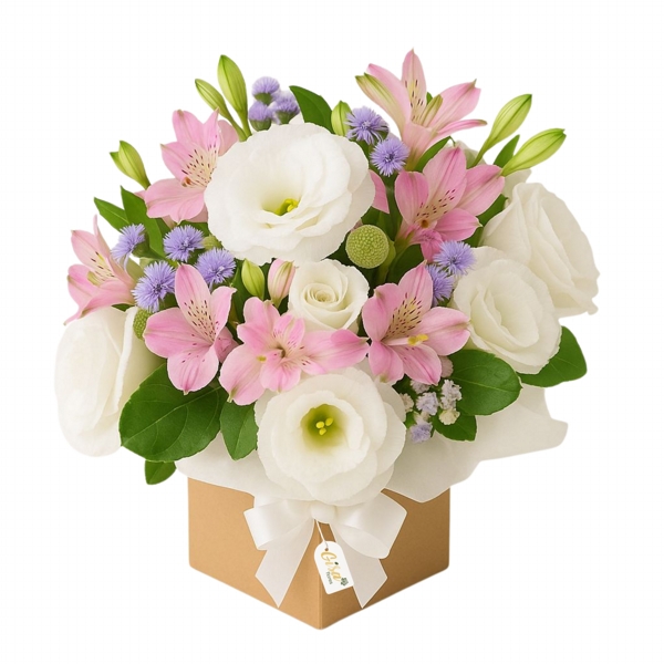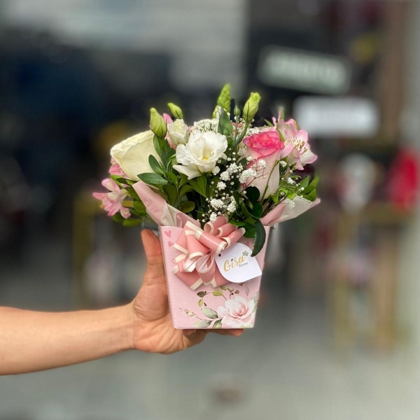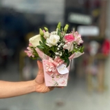 Este delicado arranjo apresenta uma seleção de flores em tons suaves, criando uma composição serena e encantadora. As cores suaves transmitem tranquilidade e calma, tornando este arranjo perfeito para decorar ambientes relaxantes e transmitir uma sensação de paz e harmonia. Ideal para presentear alguém especial em diversas ocasiões.