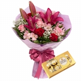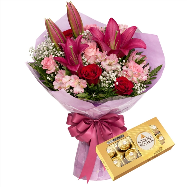 Buquê de Lírios, Rosas e Astromélias com Ferrero Rocher