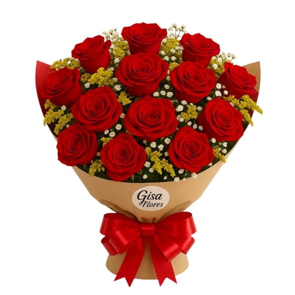 Trabalhamos com flores naturais, por isso é normal que haja pequenas variações de tamanho, formato e tonalidade. Este buquê é confeccionado com rosas, que podem ser enviadas com botões mais fechados ou mais abertos, conforme o estágio natural da flor no momento da montagem. Essas características são próprias do produto e independem do controle da Gisa Flores.