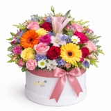 Imagem meramente ilustrativa. Por se tratarem de produtos naturais e perecíveis, não é possível confeccionar o arranjo exatamente como na foto, mas buscamos sempre produzir o mais semelhante possível. A disposição das flores pode variar durante a montagem, assim como pequenas variações de tonalidade, tamanho e formato. Embalagens, complementos e laços podem variar conforme a disponibilidade em estoque. Todas as substituições são feitas mantendo o padrão de qualidade e elegância da Gisa Flores.