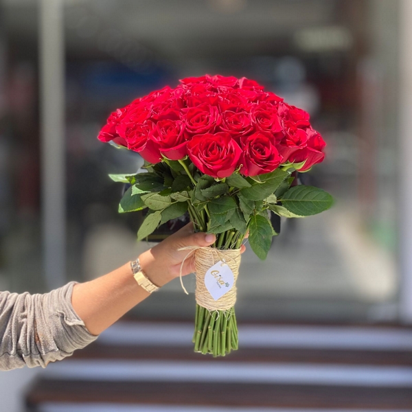 Trabalhamos com flores naturais, por isso é normal que haja pequenas variações de tamanho, formato e tonalidade. Este buquê é confeccionado com rosas, que podem ser enviadas com botões mais fechados ou mais abertos, conforme o estágio natural da flor no momento da montagem. Essas características são próprias do produto e independem do controle da Gisa Flores.