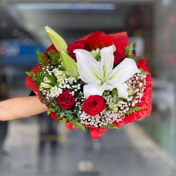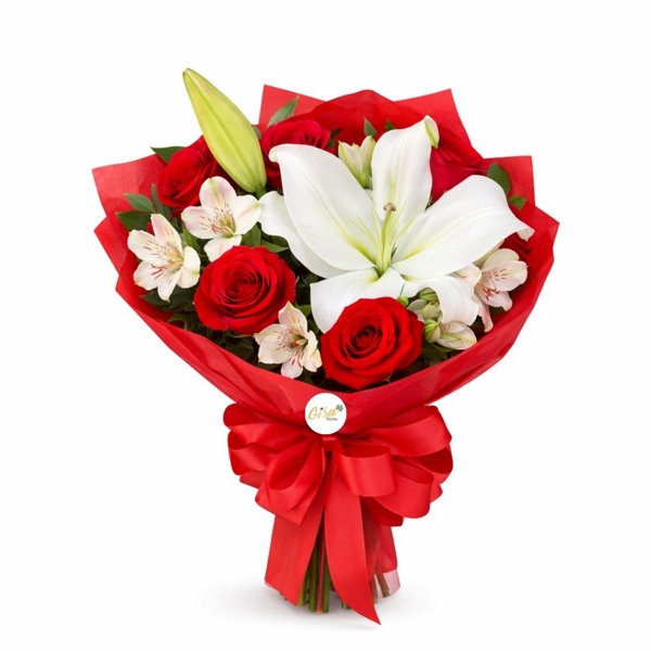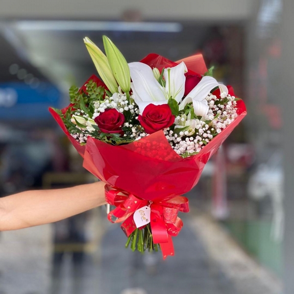 O Especial Lírios e Rosas Vermelhas é um buquê luxuoso e elegante, que combina a pureza dos lírios brancos com a paixão das rosas vermelhas. Este arranjo é cuidadosamente confeccionado para transmitir sofisticação e emoção em qualquer ocasião especial. Ideal para celebrações românticas, agradecimentos ou demonstrações de carinho.
