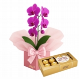 Um presente delicado e sofisticado, perfeito para encantar com charme e elegância. A orquídea rosa, símbolo de carinho e admiração, combinada com a box cartonada e o toque especial do chocolate, cria uma composição harmoniosa e inesquecível para presentear em ocasiões especiais.